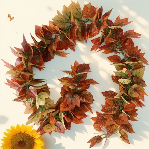 Tumbuhan menjalar of the Boston Ivy dengan daun jatuh emas buket daun buatan musim gugur untuk dekorasi luar ruangan