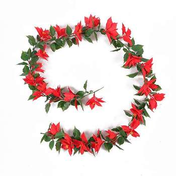 Tanaman merambat merah buatan, hiasan dinding plastik dekorasi pernikahan tanaman plafon bunga Natal untuk dekorasi Natal